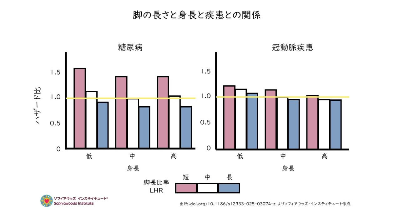 この研究では、身長だけでなく、身長に対する股下の長さ(脚の長さ)と疾患との関係が調査されています。
