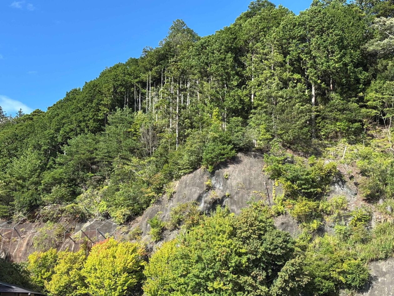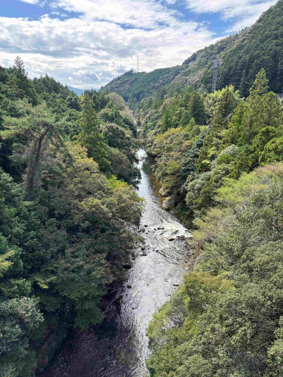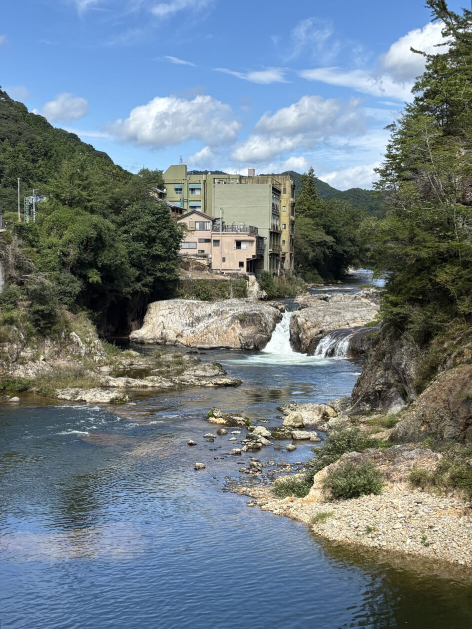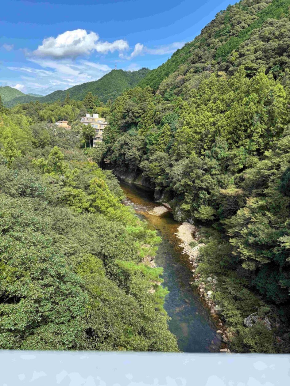 愛知県新城(しんしろ)市にある国の指定公園の鳳来峡(ほうらいきょう)にある湯谷温泉(ゆやおんせん)です。