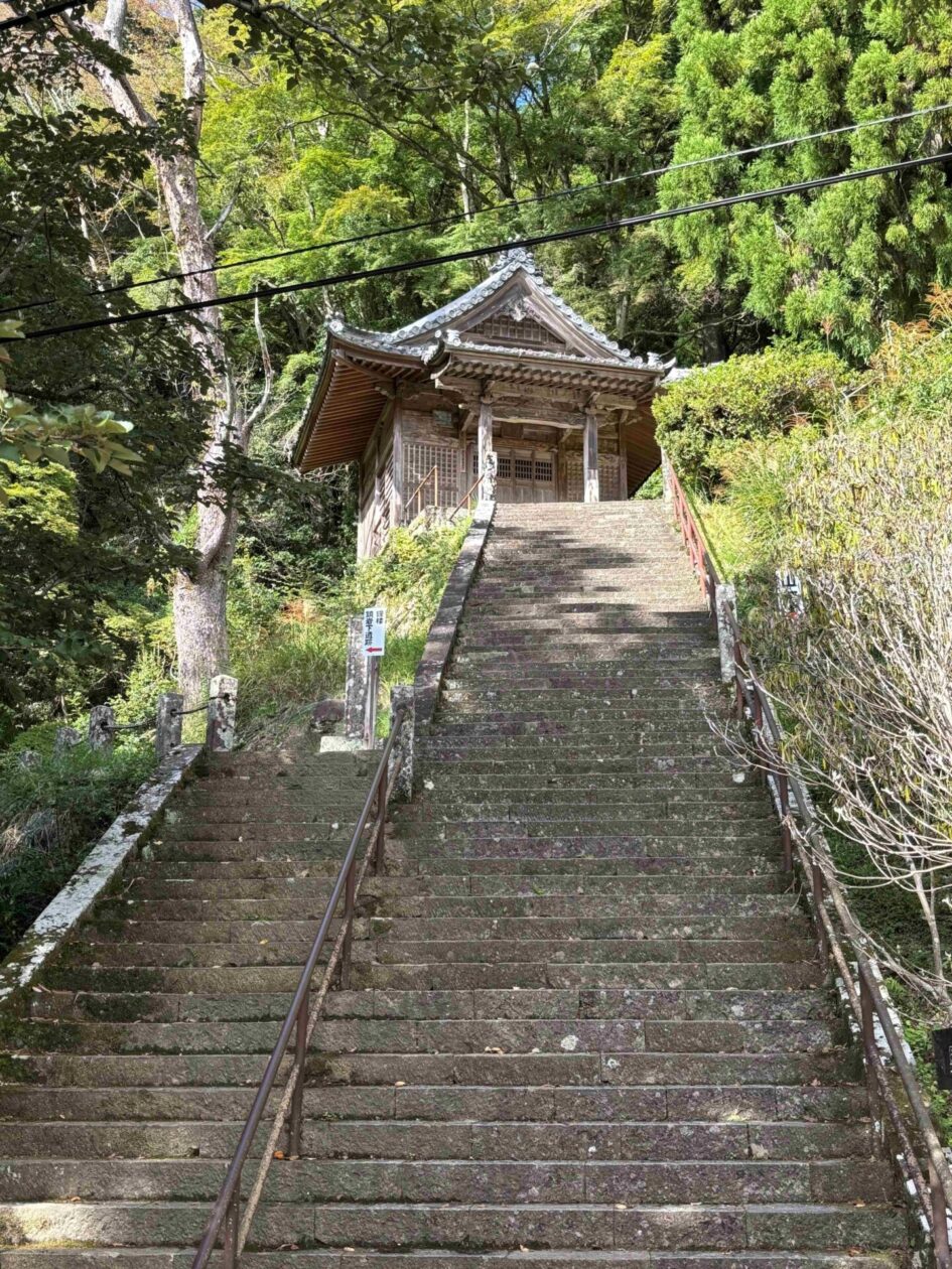 本堂の裏手に周ると、奥の院へ続く長い石段がありました。
