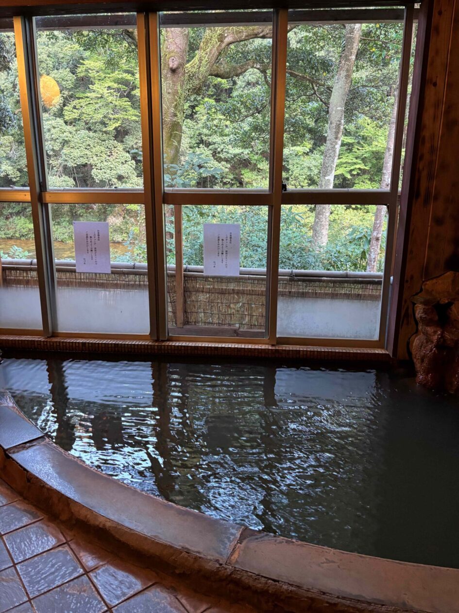 こちらは家風呂のようにはできない共同浴場でした。でも、わたしたち3人しかいない時間がありましたので、こちらでものんびりゆっくりと温泉を楽しむことができました。