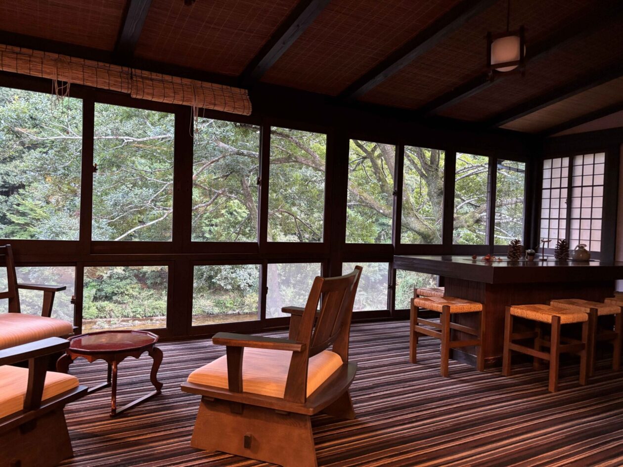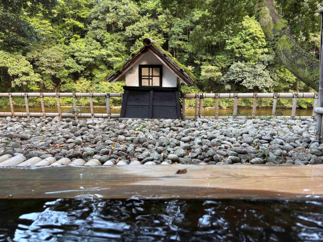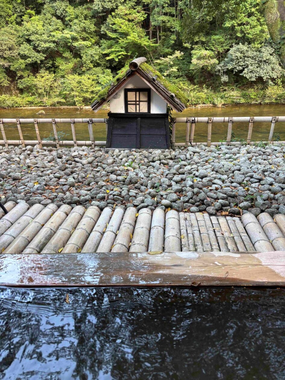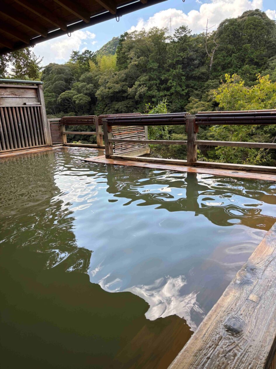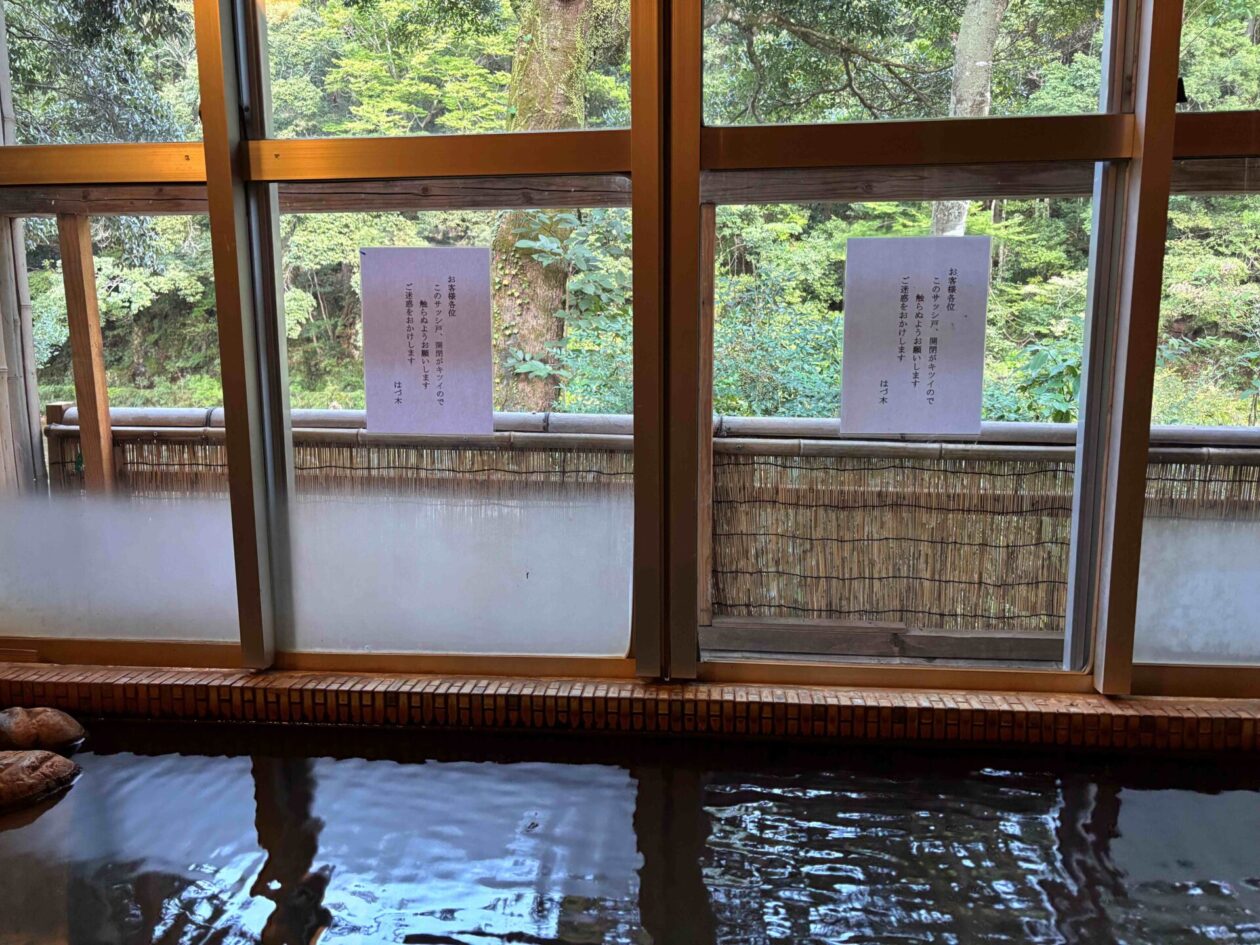 温泉のお風呂は、内風呂と露天風呂の2つでした。両方のお風呂から板敷川を眺めることができます。また、両方とも家族だけで使うことができる仕組みでした。