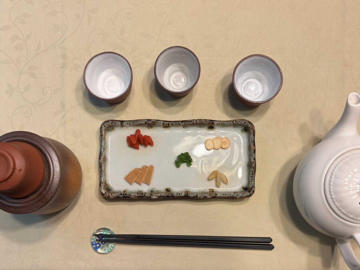 最初に食前の薬膳茶をブレンドしてくださいました。