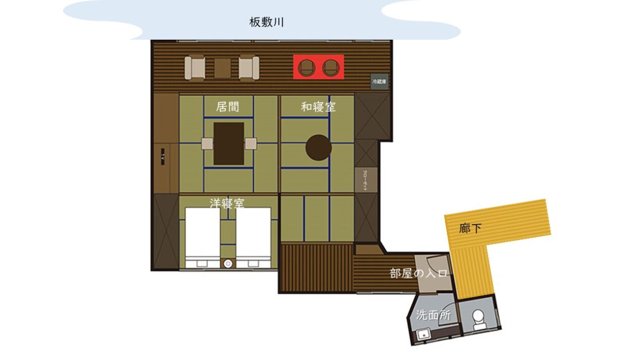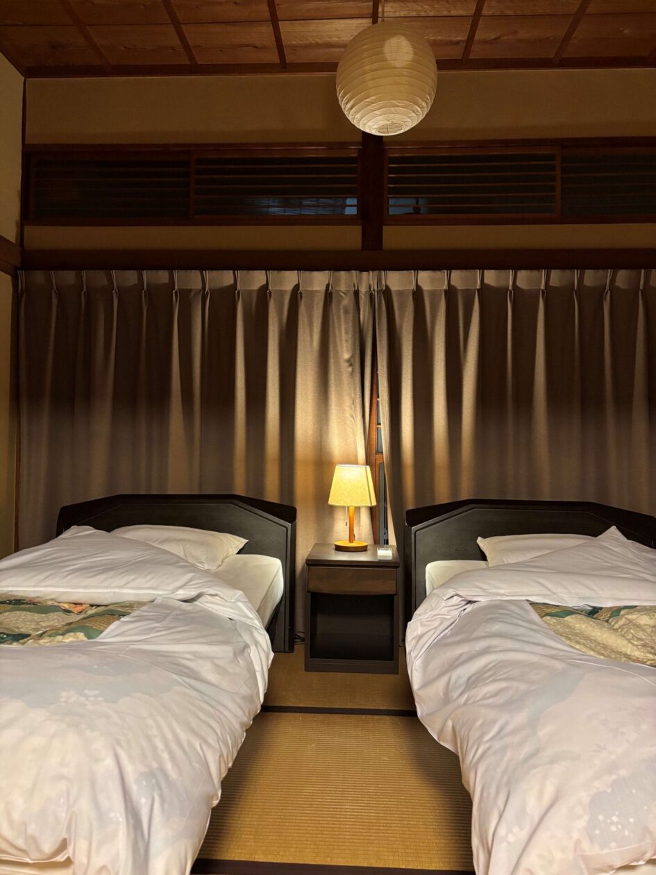 禅のお部屋は、寝室が2間と居間と玄関のような空間がある造りで、廊下から入口を入っても更に廊下があるので、それ自体が一戸のような間取りでした。