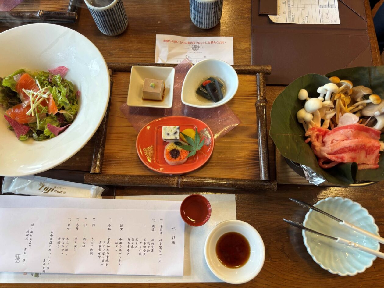 その後、チェックアウトの時間まで、再び温泉に入り(笑)ひたすらのんびりと過ごし、11時にチェックアウトした後、「はずグループ」の別の施設「湯の風HAZU」に移動。