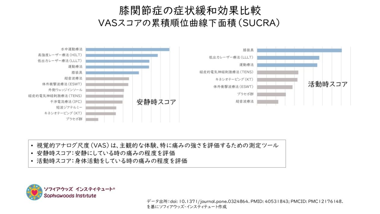 変形性膝関節症の患者9,644人を対象とした、12種類の治療法を比較した139件のランダム化比較試験の結果が2025年7月に発表されました。