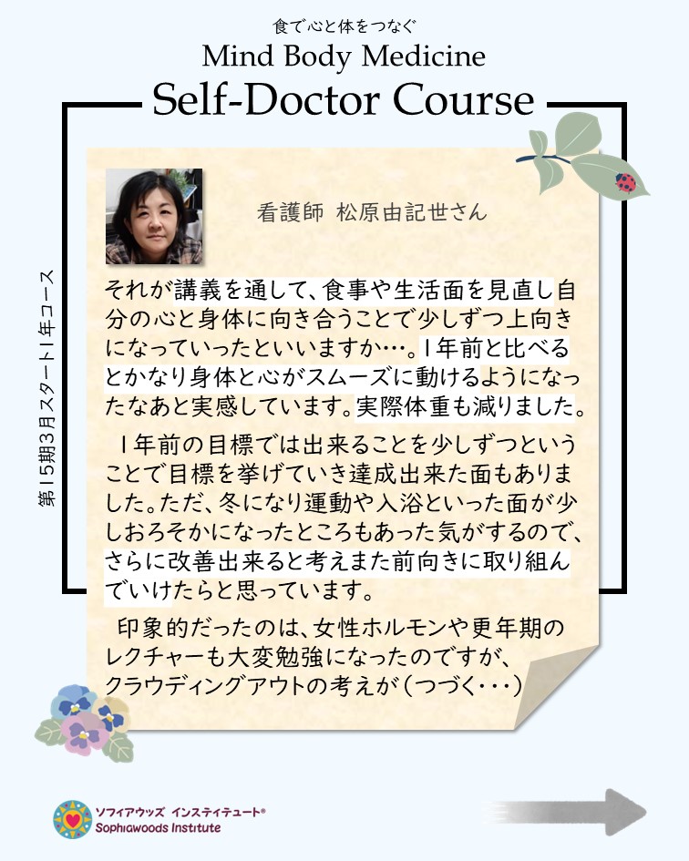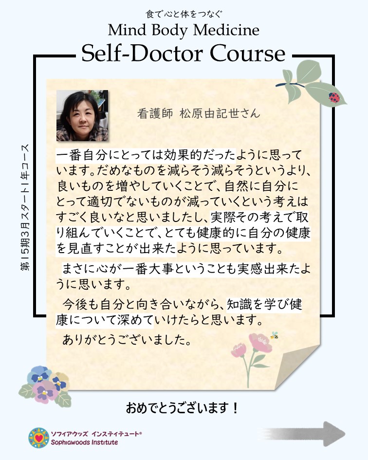 あなたもソフィアウッズ・インスティテュートのマインド・ボディ・メディシン講座セルフドクターコースで学びませんか?