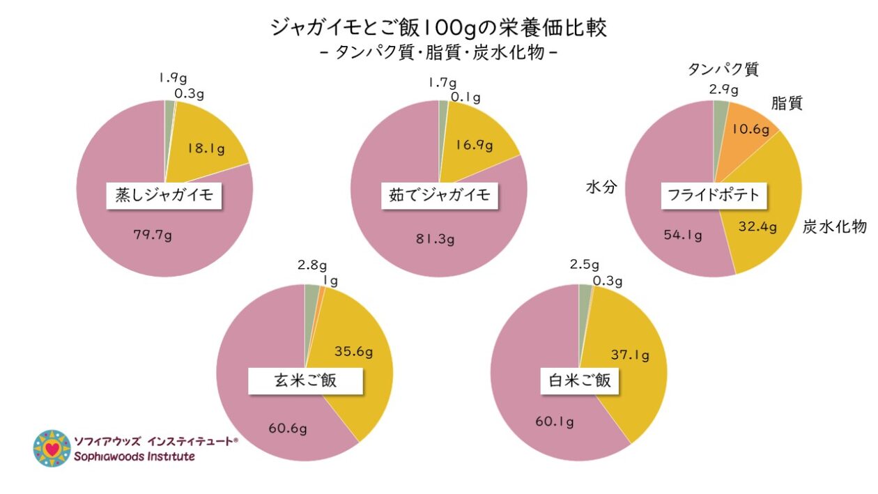 ビタミンCは、加熱調理に弱く、水に溶けてしまう水溶性です。なのに、ジャガイモのビタミンCは蒸しても茹でても揚げてもこんなにたくさん残っているなんて、なんて素敵なんでしょう。