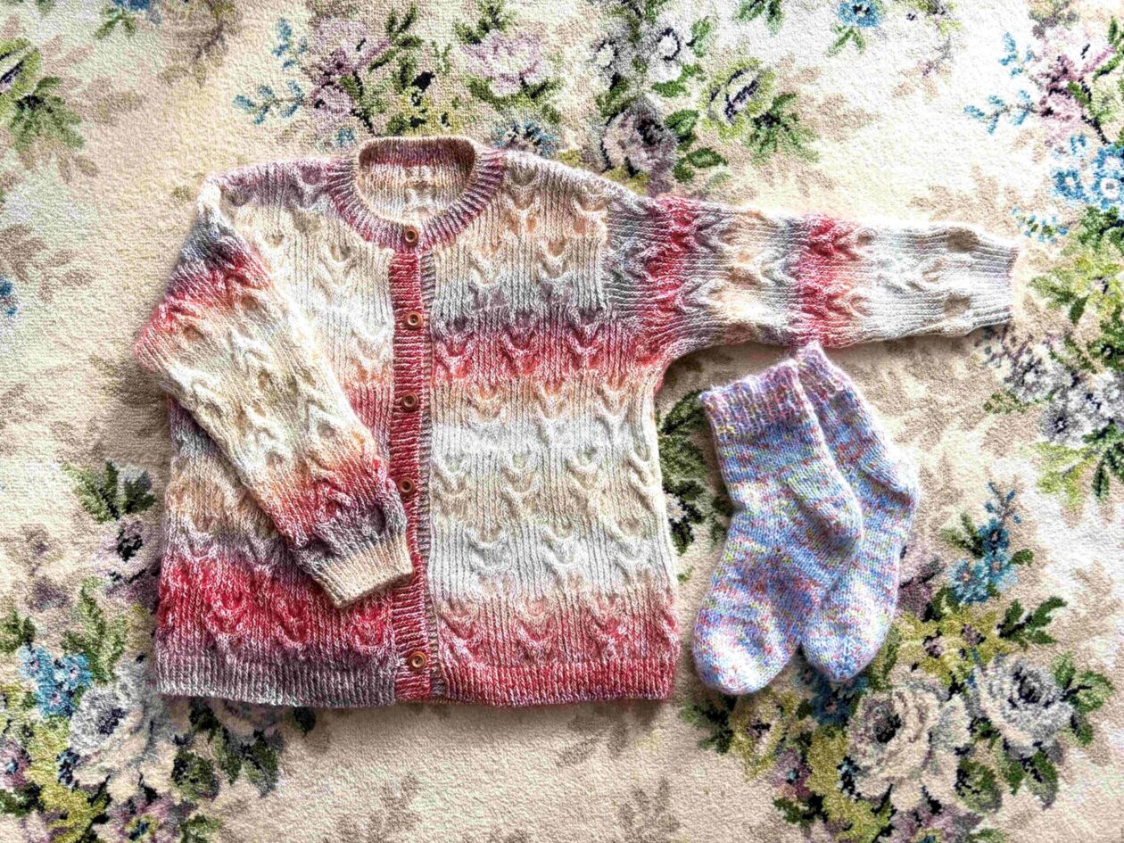 クリスマスの朝には母から手編みのカーディガンと靴下をいただきました!89歳の母ですが、手編みの腕はまだまだ現役です。