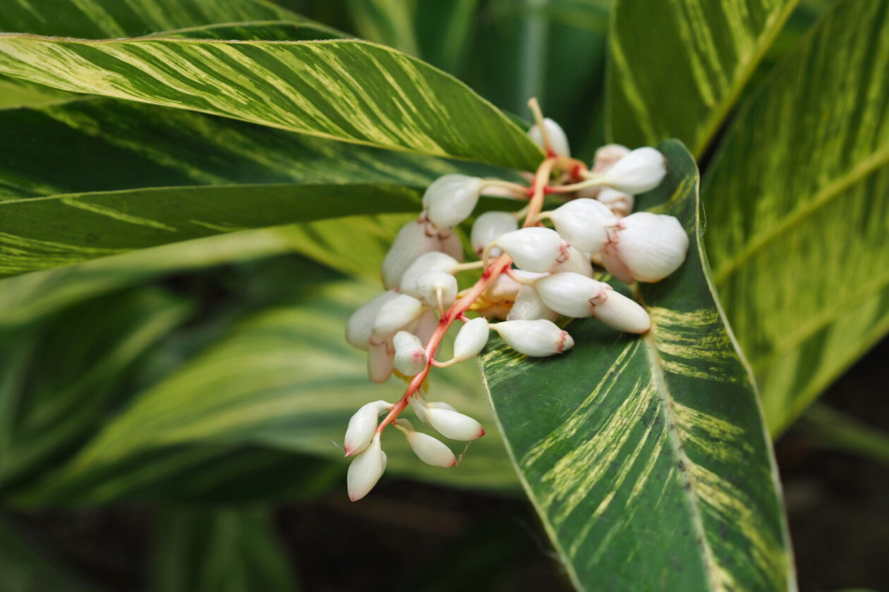 島月桃のお花は4月から6月頃に咲いて、梅雨の前の頃に盛りを迎えます。