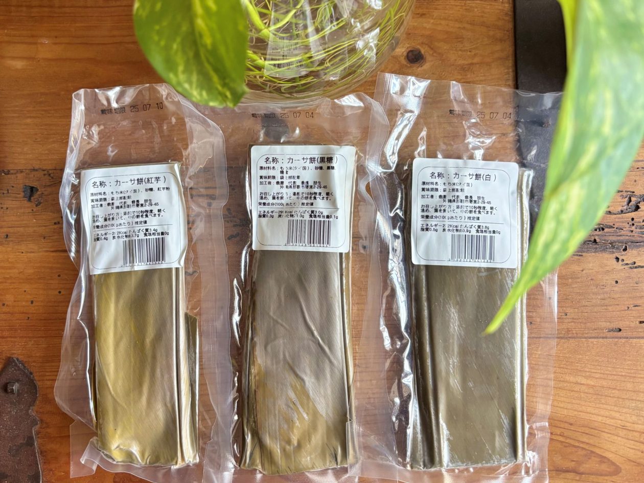 ウコンの粉末や黒糖、紅芋など入れ、彩りよく仕上げることもあり、サンニンの葉の代わりにクバ(蒲葵)を使っても作られるそうです。