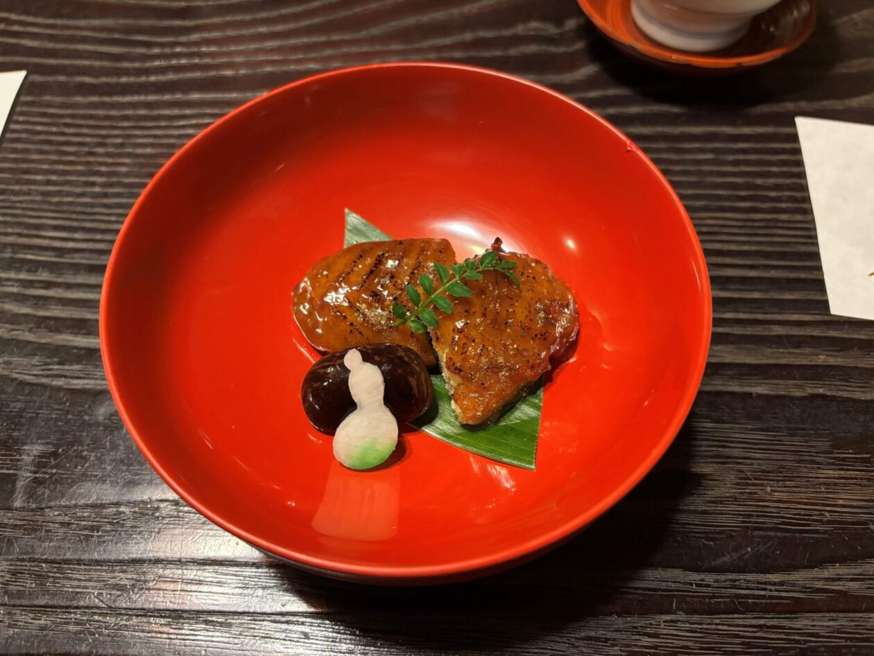 普茶料理は精進料理なので、本物のウナギは使われていません。でも、鰻のかば焼きのような食感がちゃんと再現されていました。