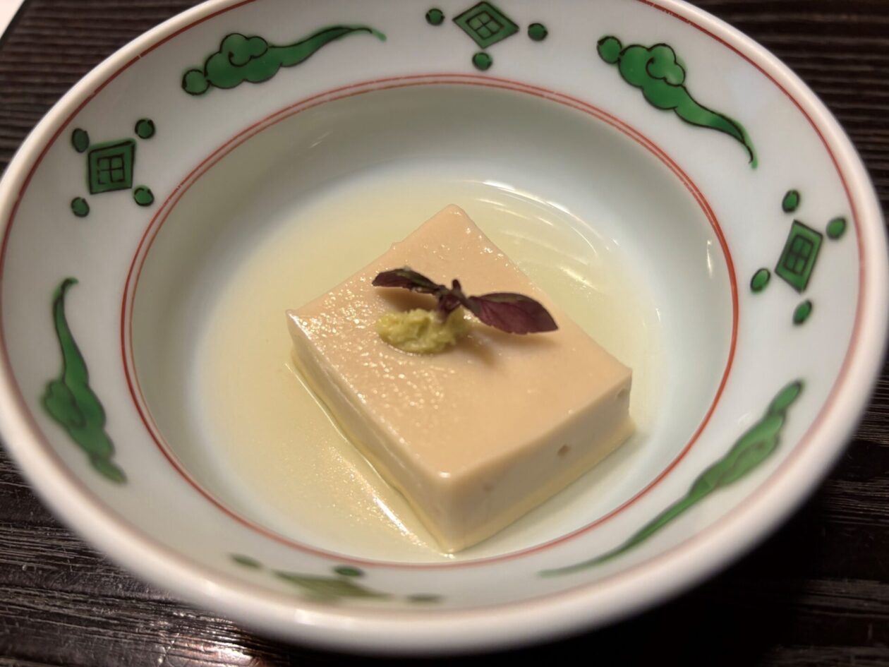 胡麻豆腐です。上に載っているのは、紫蘇の若芽です。