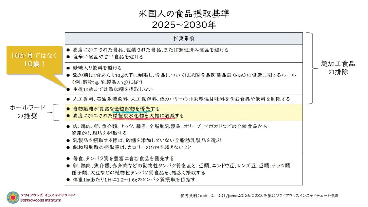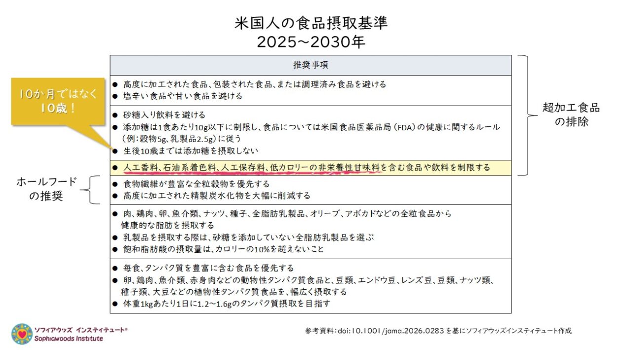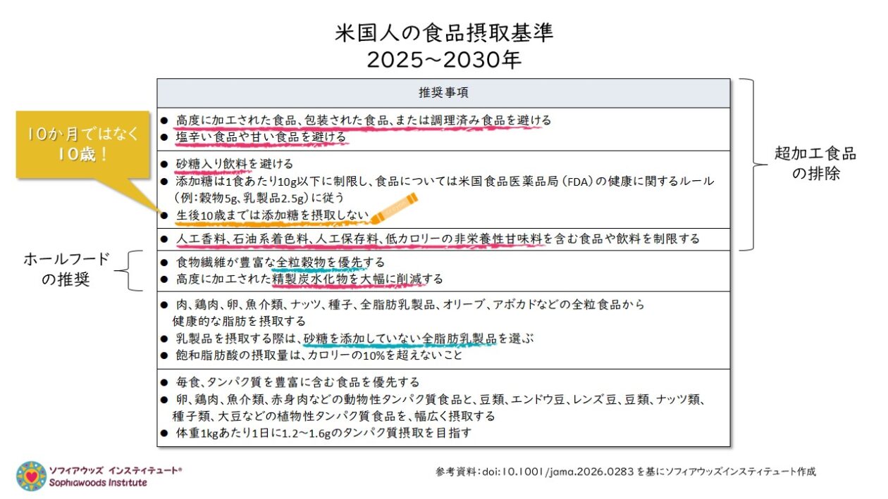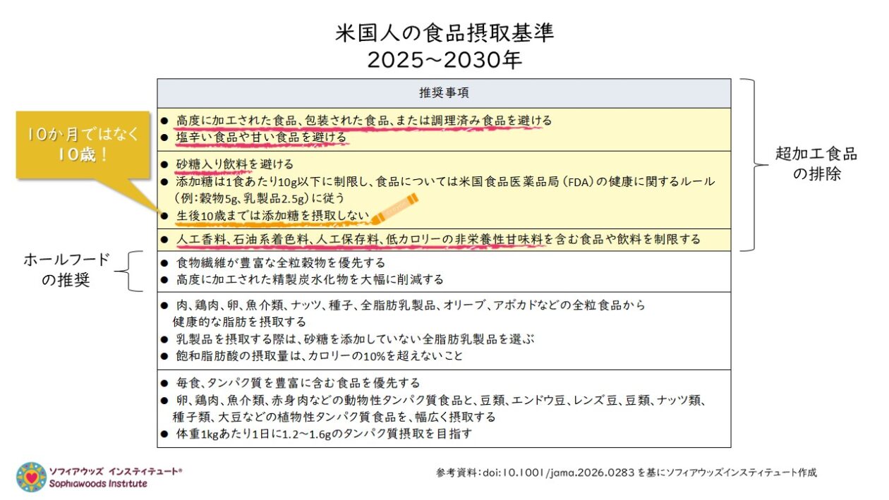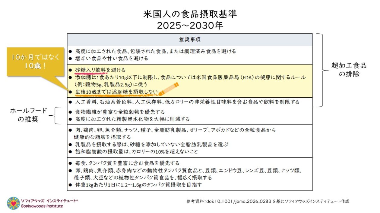 日本で暮らす者として非常に残念なことは、この「米国人の食事ガイドライン」に今回盛り込まれた内容のひとつとして、2025年の最新版の「日本人の食事摂取基準」には、一文字も記載されていないということです。